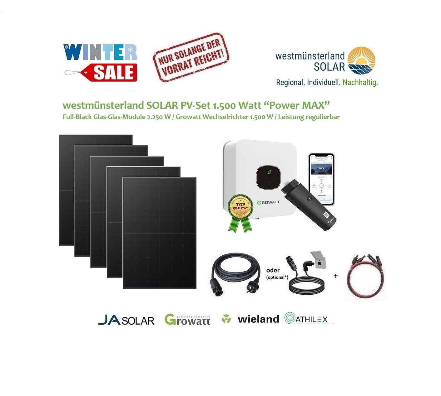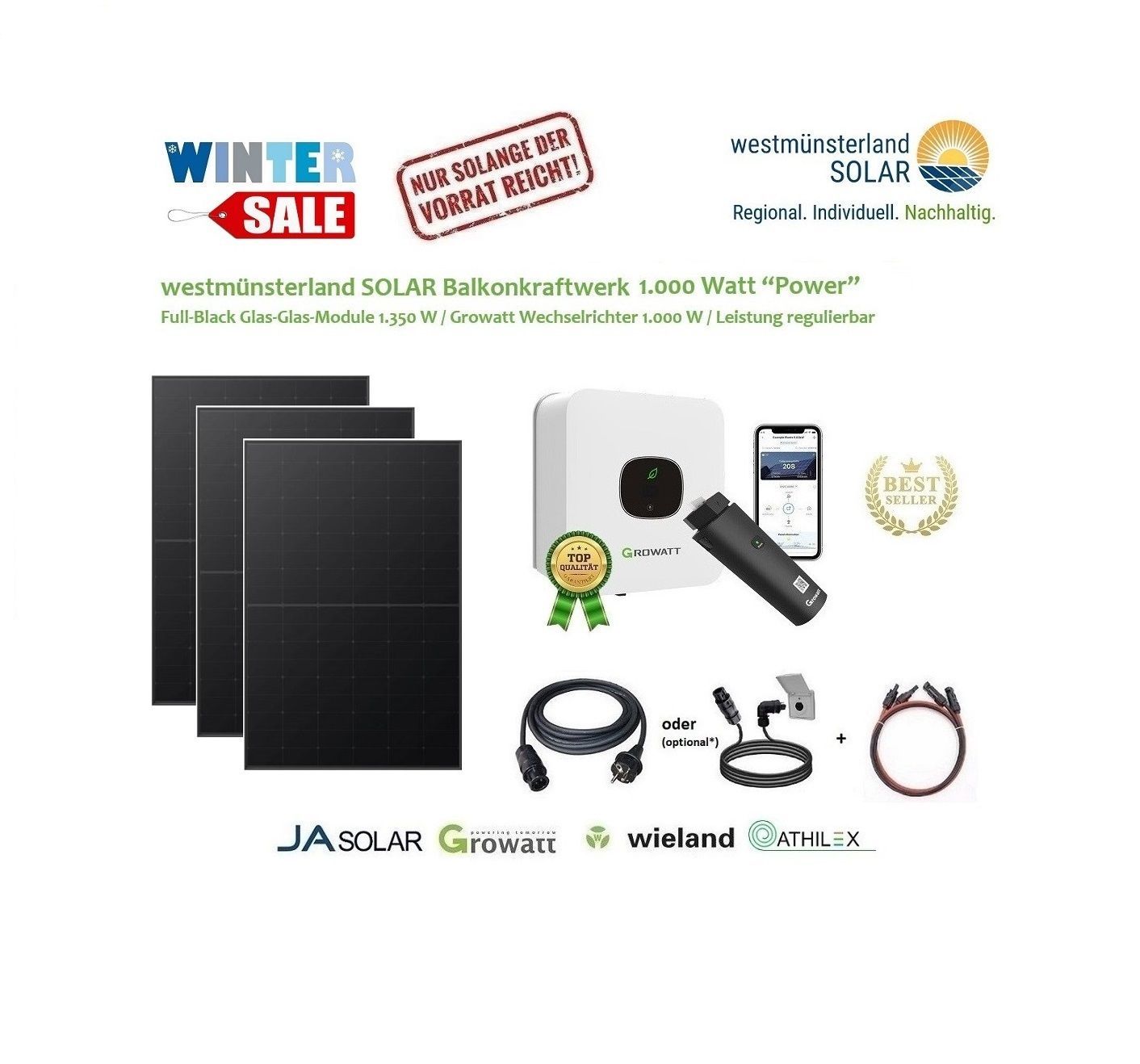 Bei einem Balkonkraftwerk handelt es sich um eine kleine Photovoltaik-Anlage, die auch unter den Bezeichnungen "Mini-PV-Anlage" oder "Stecker-Solaranlage" geführt wird. Ein kleines Kraftwerk wie dieses, besteht in der Regel aus 2-4 Solarmodulen, einem sogenannten Micro-Wechselrichter, sowie Verbindungs- und Anschlußkabeln und wird von uns mit oder ohne Halterung geliefert.