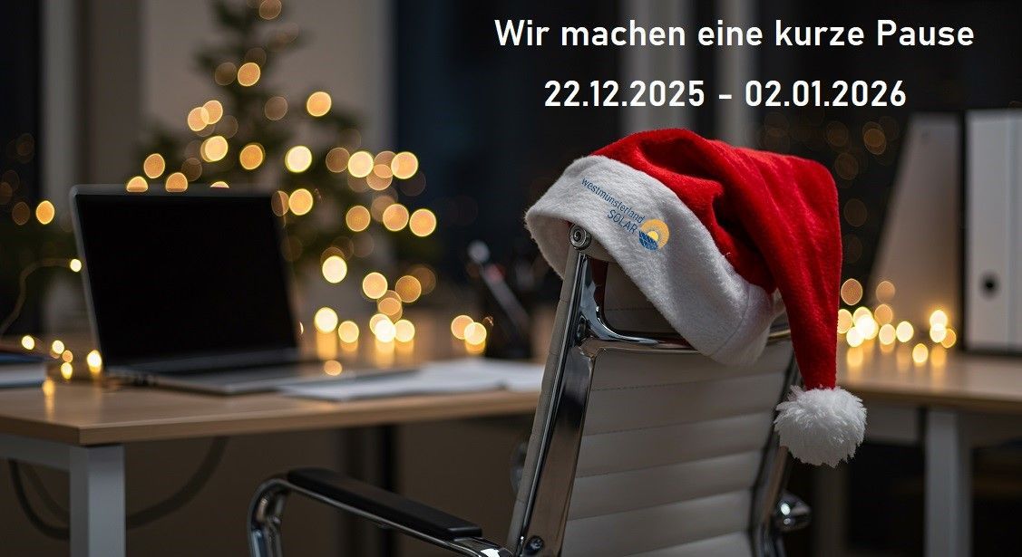 Vom 22.12.2025 bis zum 02.01.2025 gönnen wir uns eine kurze Pause und laden die Akkus wieder auf. Bis dahin wünschen wir Ihnen und Ihren Lieben ein gesegnetes Weihnachtsfest voller glücklicher Momente, leuchtender Augen, Besinnlichkeit, ganz viel Schokolade und einen guten Start in das Jahr 2026.